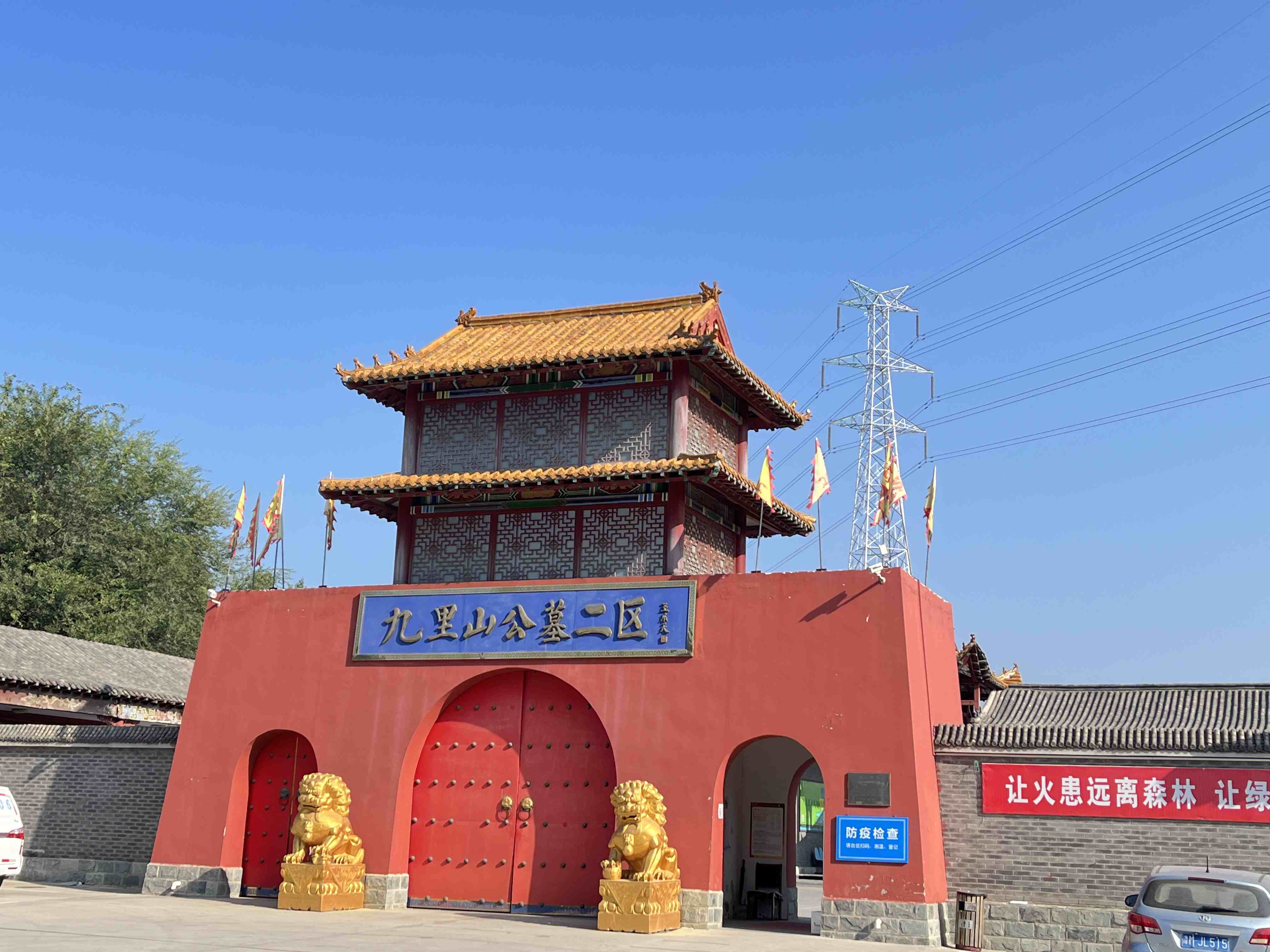 九里山公墓二区是昌平区民政局审批的公益性公墓,位于昌平城东8公里处,东西走向,绵延九华里。犹如一条巨龙,头东尾西,横卧在燕山前面。只有京密运河龙泉之水,自东向西环山流过。九里山公墓二区陵园即座落在九里山东端的龙头下。